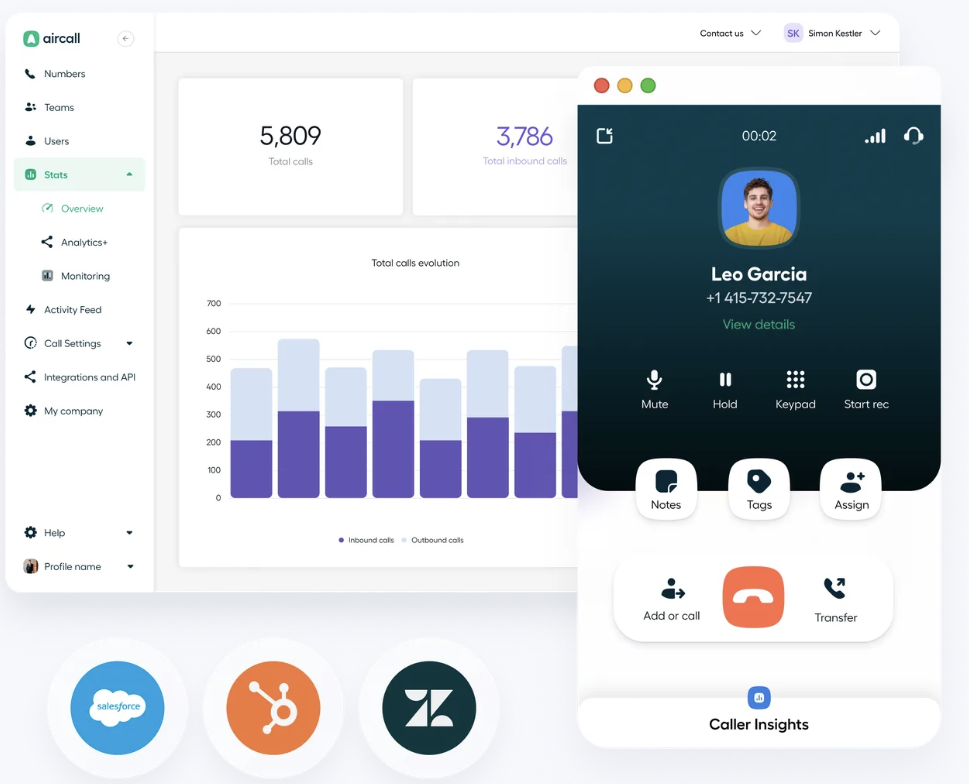 If you’re looking for a call center solution that integrates with your helpdesk and CRM to fetch customer/user details and take away manual labor, Aircall is the solution for you. Get weekly analysis on customer wait times and keep track of the activity fee in real time to see the calls coming through.