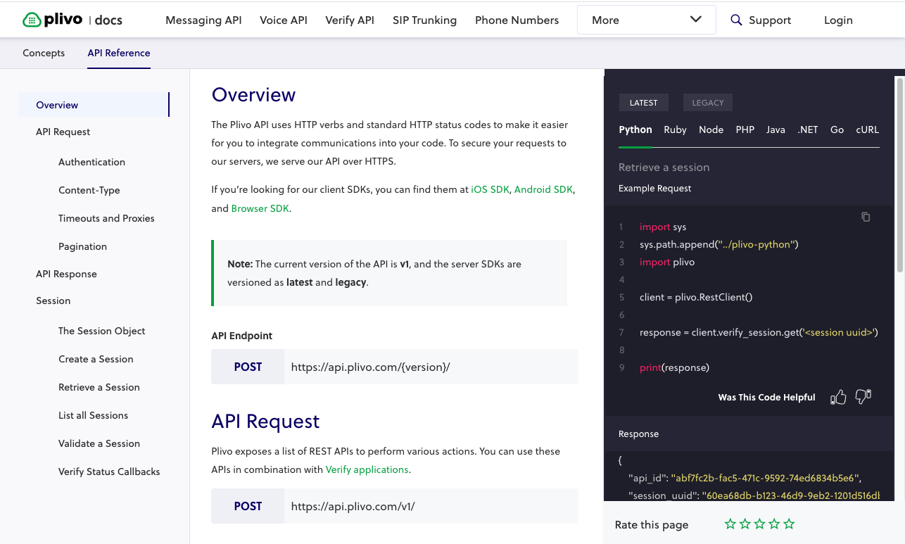 For example, Plivo offers a well-documented API to help you set up MFA. Plivo’s API uses standard HTTP verbs and status codes, which makes it easy to integrate into your existing systems. Whether your development team prefers Python, Ruby, Node, PHP, Java, .NET, Go, or even cURL, the setup process is consistent and streamlined.