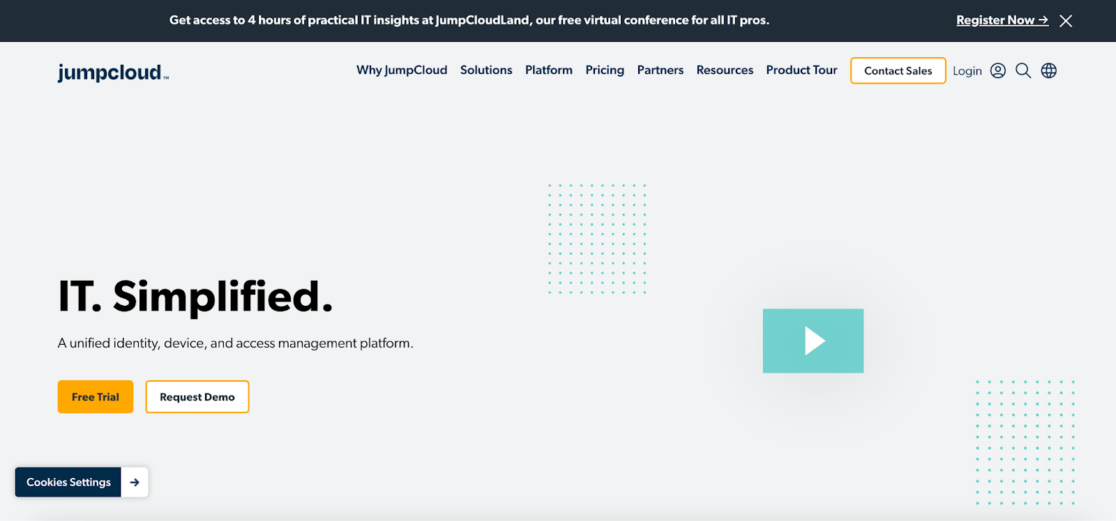 JumpCloud is a cloud-based directory platform that provides centralized identity and access management for organizations. Two features in the platform, JumpCloud MFA and JumpCloud Protect™, secure user access to applications, devices, networks, and other resources.