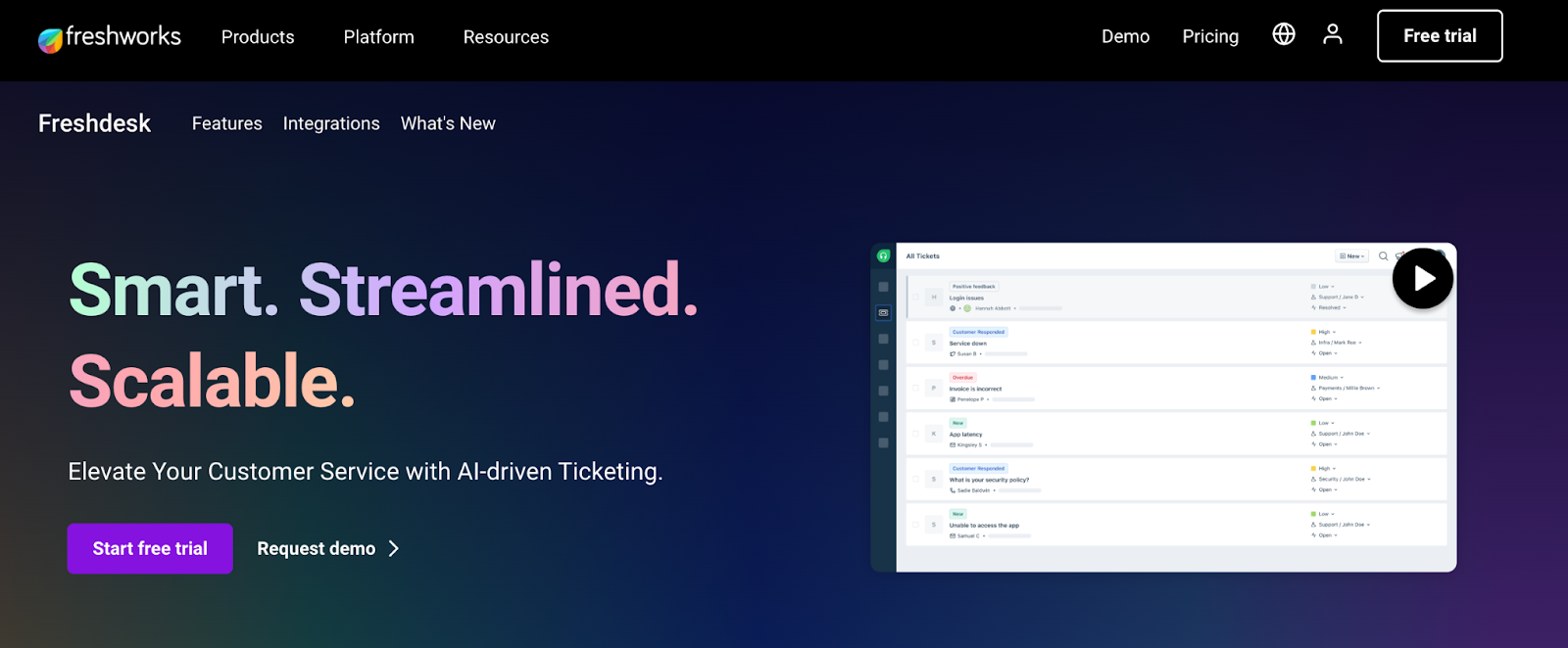 Freshdesk is a cloud-based omnichannel customer service software designed to improve your customer support efforts by managing inquiries across various channels from a single platform. It's tailored to help your team deliver personalized support and intuitive responses, ensuring every customer issue is resolved efficiently.