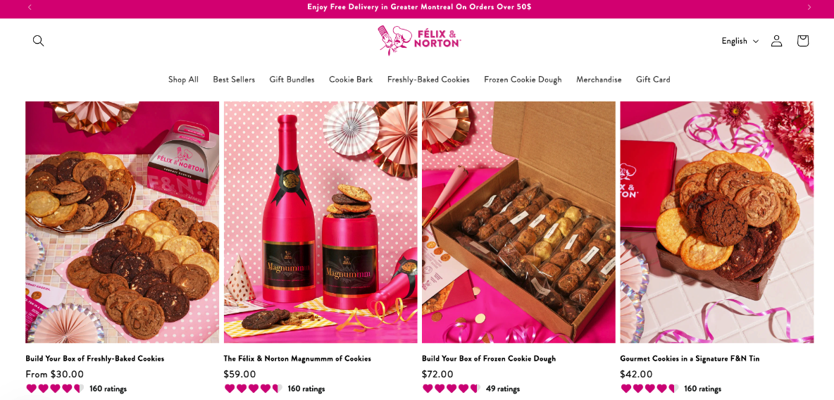 Displaying popular or recommended products on the homepage also encourages impulse buys. For example, check out this enticing homepage by Felix & Norton.