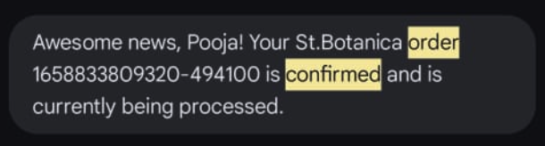 St. Botanica shares order confirmations via SMS.