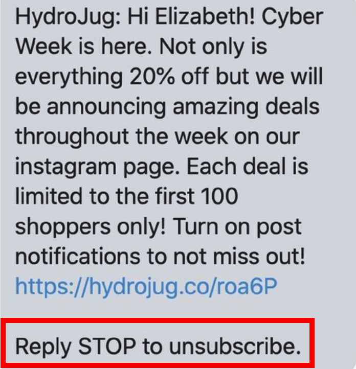 To comply, you can include a line like "Reply STOP to unsubscribe". It satisfies this law requirement.