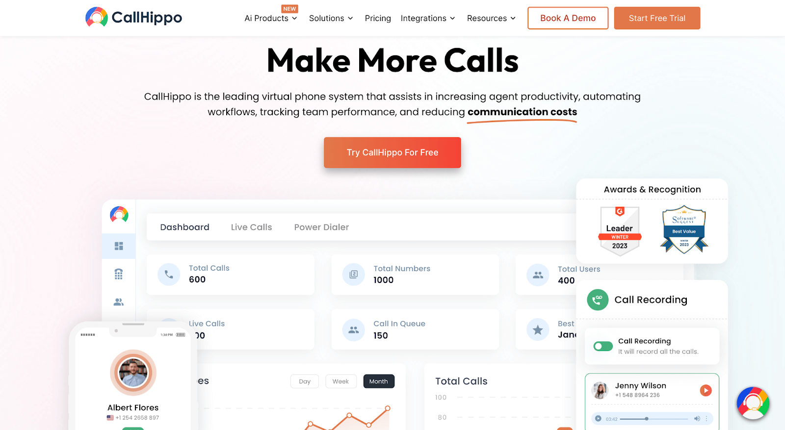- Analytics tools: Get detailed insights into call data, performance metrics, and agent productivity.