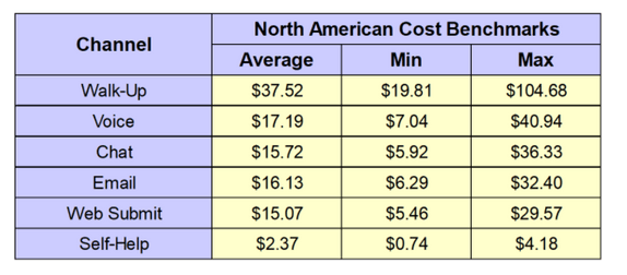 A study finds the below channel wise cost metrics for the North American market in 2021. It shows that the cost of self-help channel is on average 8X better than voice or chat based channels.