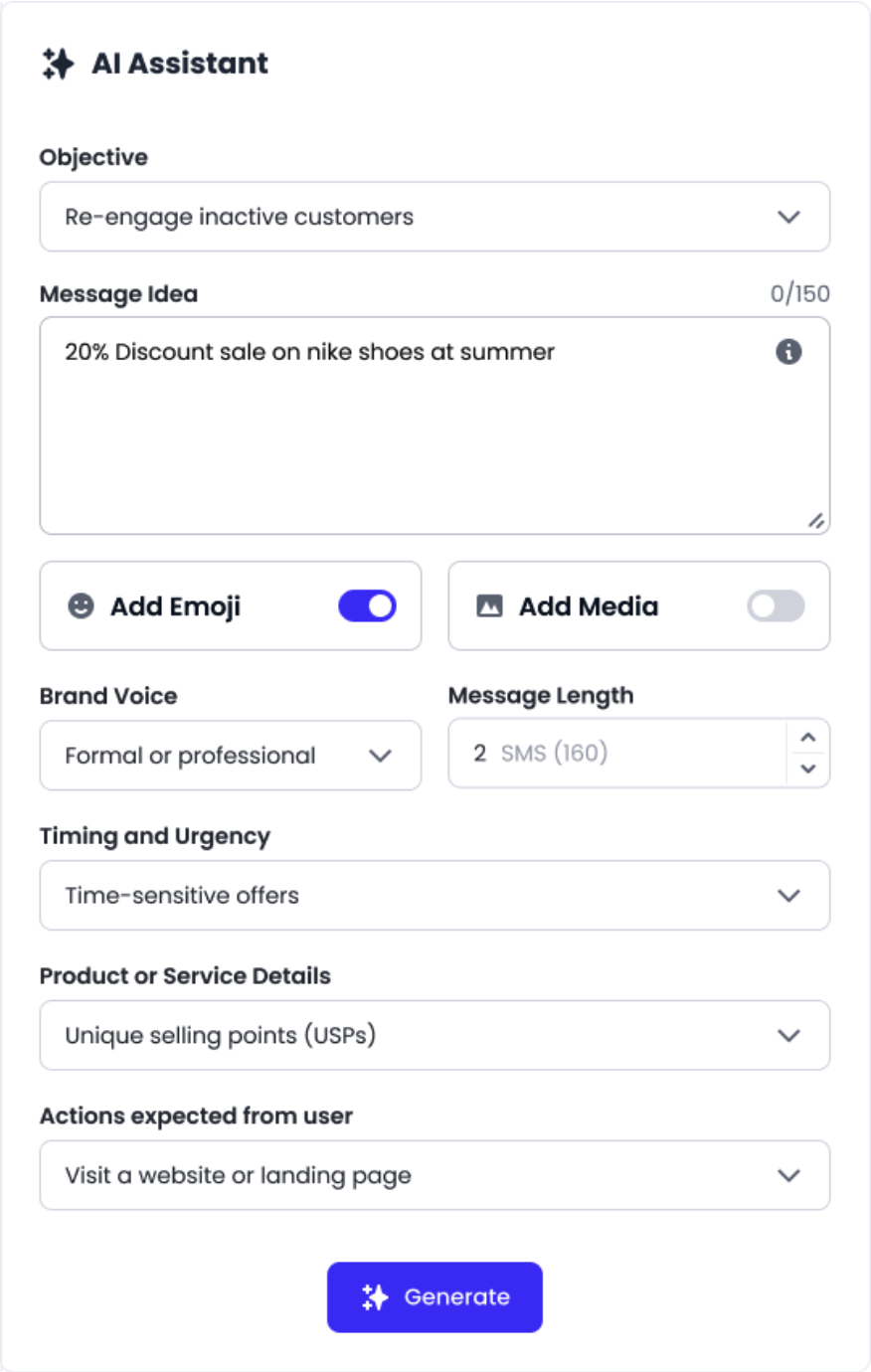 You also get 3-4 options of SMS copy to choose from. So, you can pick the best one and fine-tune it based on your preference.