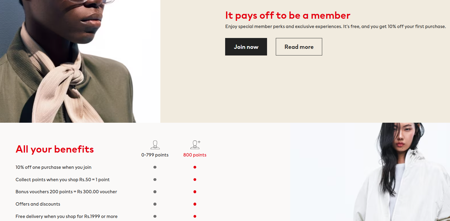 Take the H & M membership webpage for reference. It explains points associated with the rewards and also has a join now option.