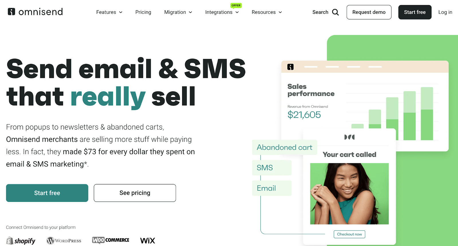 Omnisend is also a robust omnichannel marketing platform designed specifically for ecommerce businesses. By integrating SMS marketing automation directly into your workflows, the tool enables you to engage with your audience through automated SMS messages without juggling multiple tools.