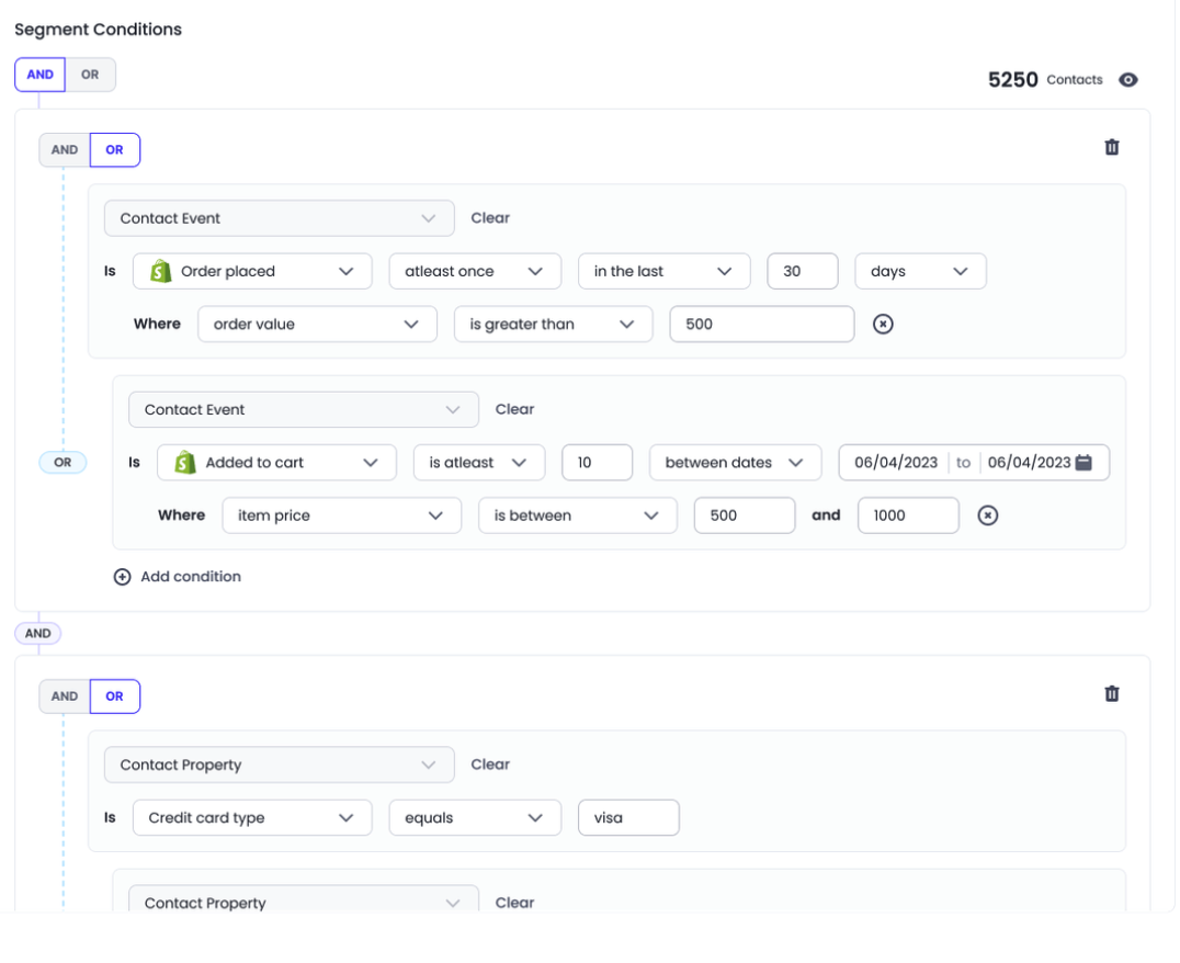 You can try Plivo CX’s Audiences to automate the segmentation process. It syncs contacts from your Shopify store in real time and allows you to segment customers based on unlimited rules.