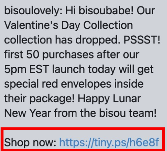 Ensure your message indicates what the customer should do next, such as "Shop Now," "Learn More," or "Get Offer.” Use URL shorteners to keep your messages clean and concise. This also helps you stay within the SMS character limit.