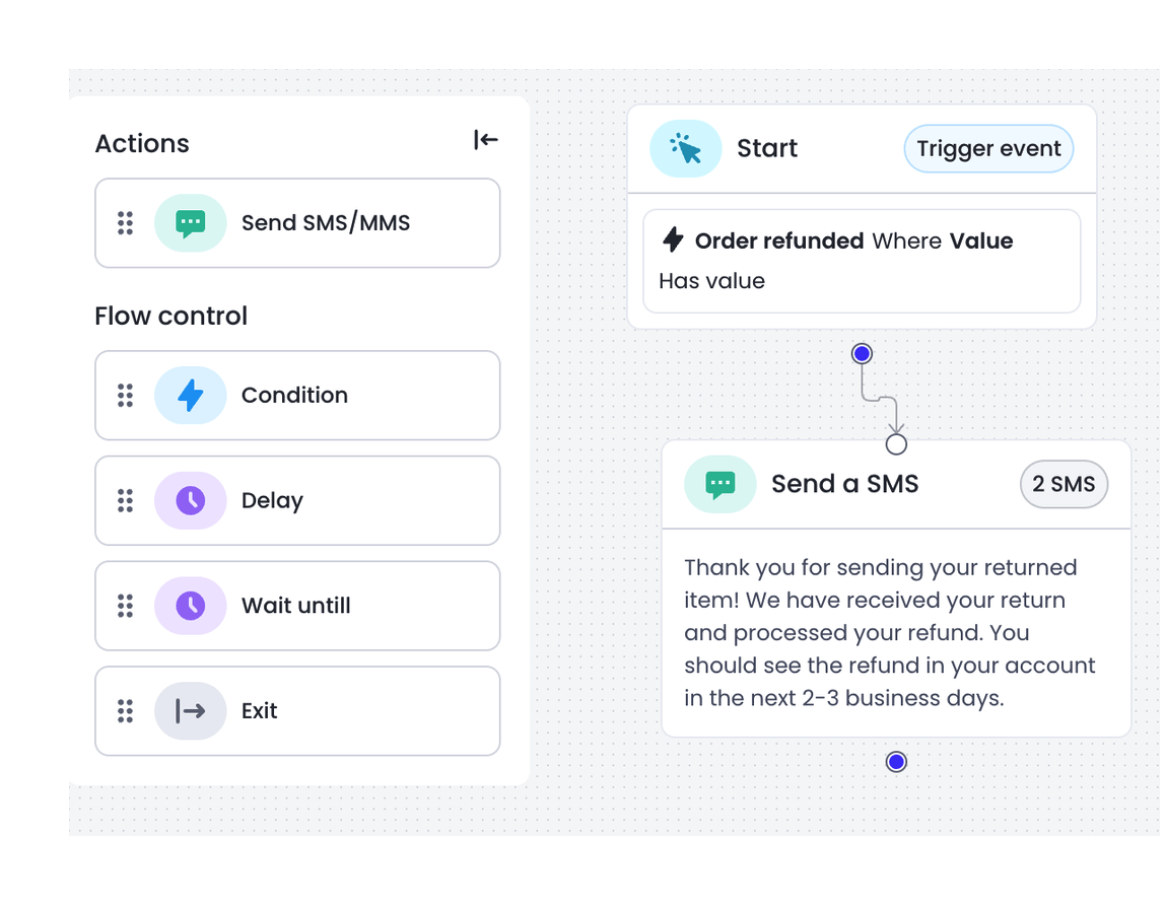 With trigger-based messages, Plivo CX lets you create dynamic SMS workflows that adapt to customer behaviors and send messages to customers at the right time.