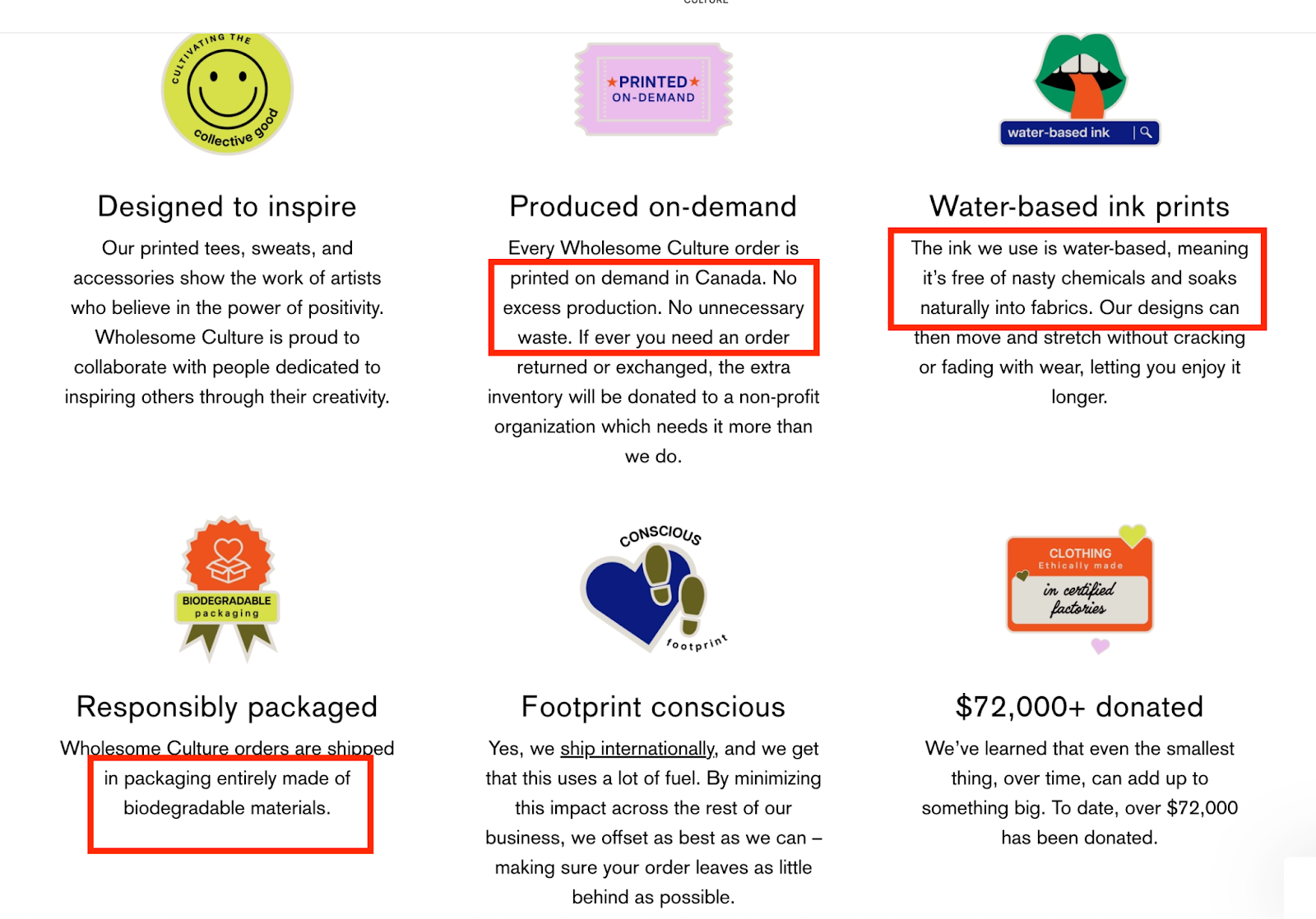 See how Wholesome Culture showcases their sustainability efforts on their website: