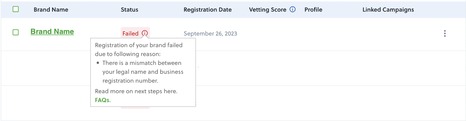 However, if your registration is rejected, you’ll have to share additional information depending on the feedback provided by the phone carrier and go through another round of vetting.