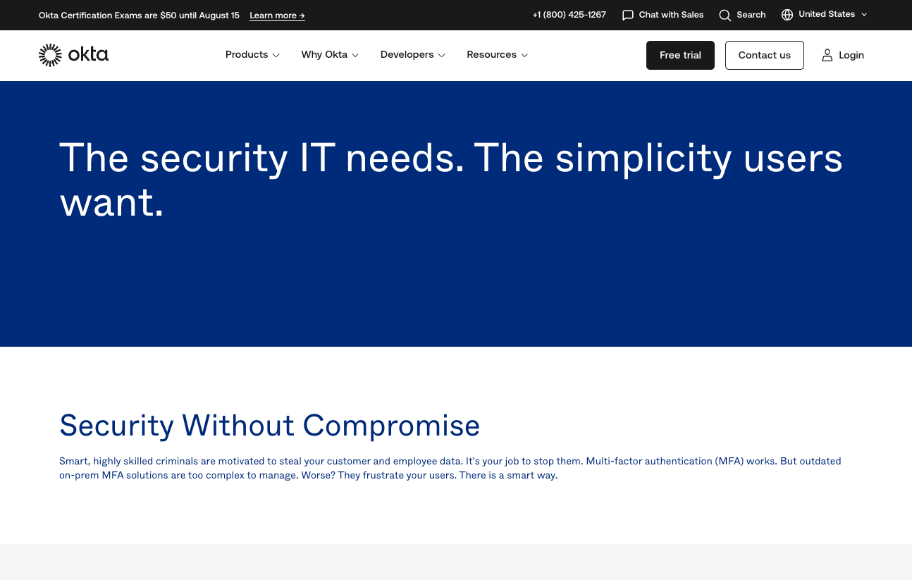 Okta’s MFA solution is a leader in the market, especially with its adaptive policies Okta allows better strength in security without frustrating users. It is highly favored by larger enterprises with a need for flexible and scalable identity management.