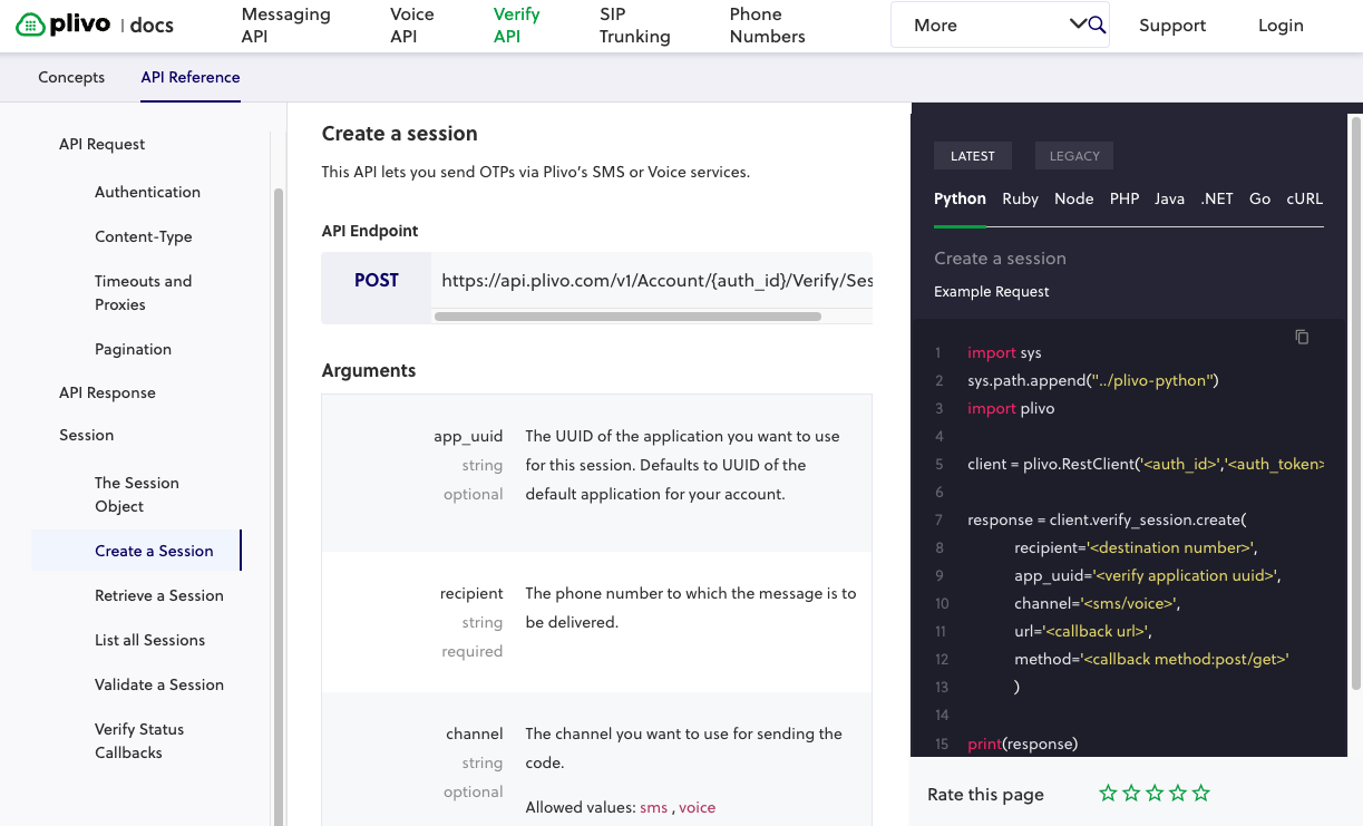 For example, Plivo offers a well-documented API to help you set up MFA. Plivo’s API uses standard HTTP verbs and status codes, which makes it easy to integrate into your existing systems. Whether your development team prefers Python, Ruby, Node, PHP, Java, .NET, Go, or even cURL, the setup process is consistent and streamlined.
