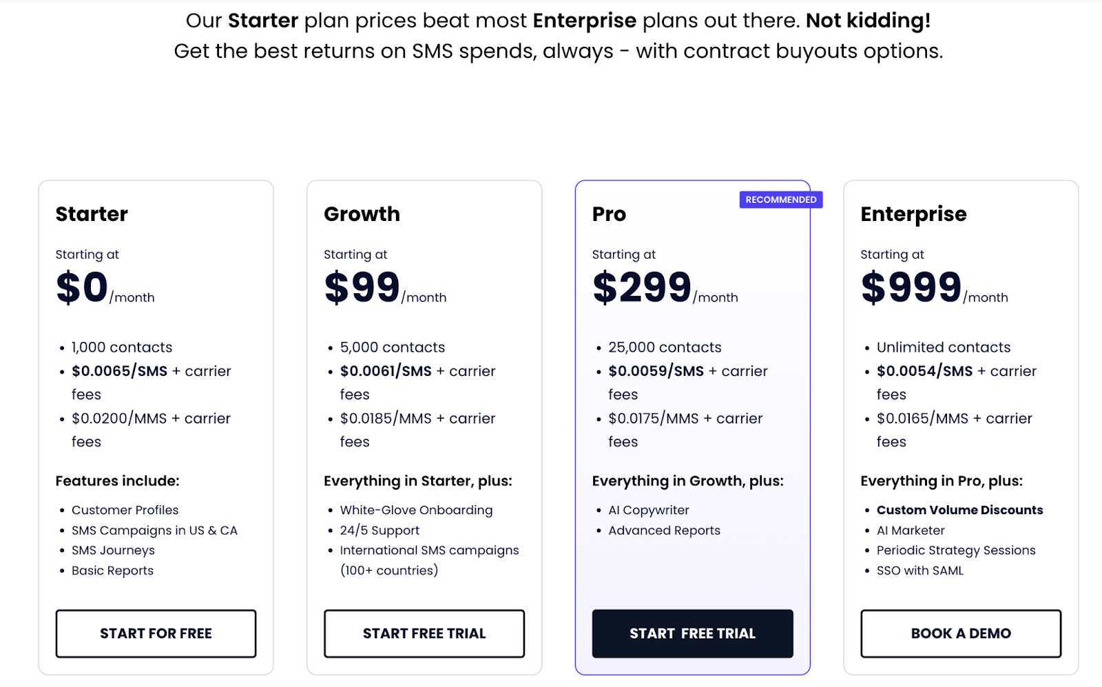 Here's a breakdown of Klaviyo’s SMS pricing for different plans: