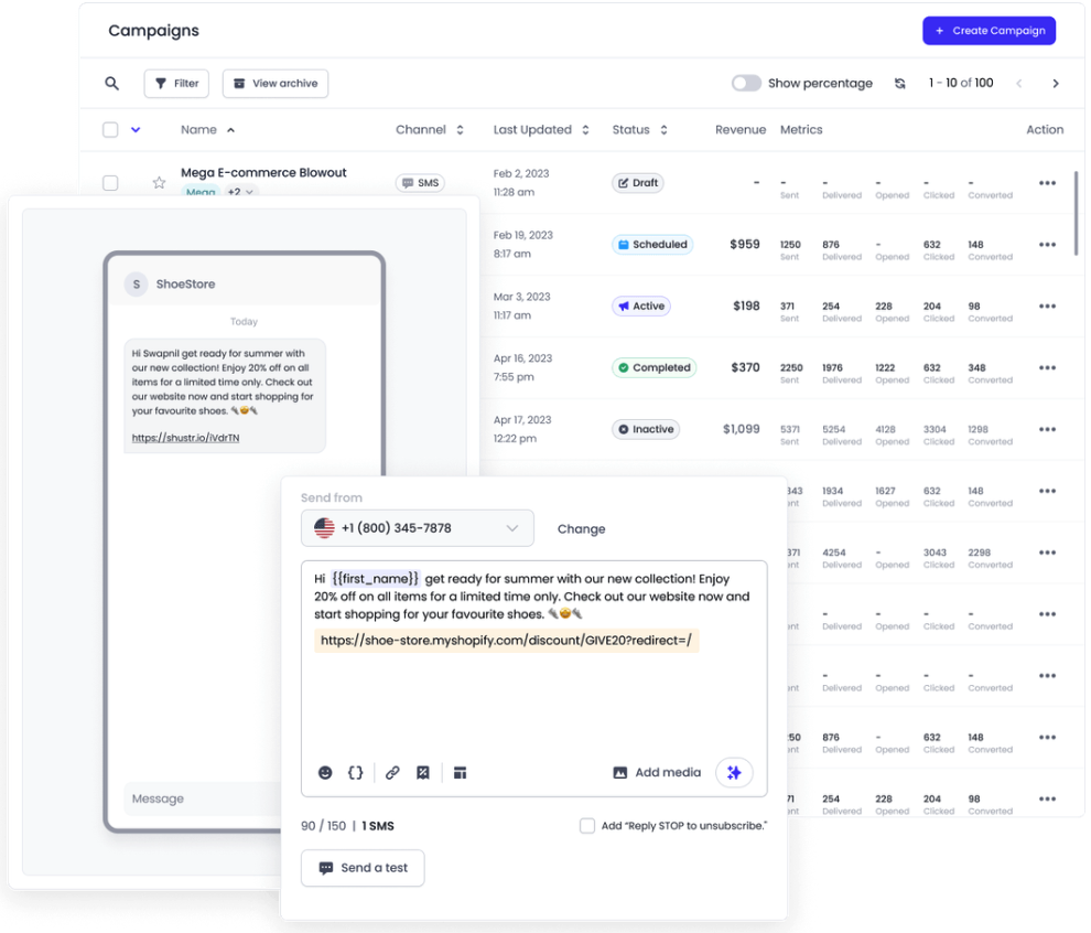 To help you accelerate this process, the AI-powered customer engagement platform Plivo CX’s SMS marketing lets you leverage your customer data to send personalized SMS offers and promotions, leading to more sales and higher revenue.