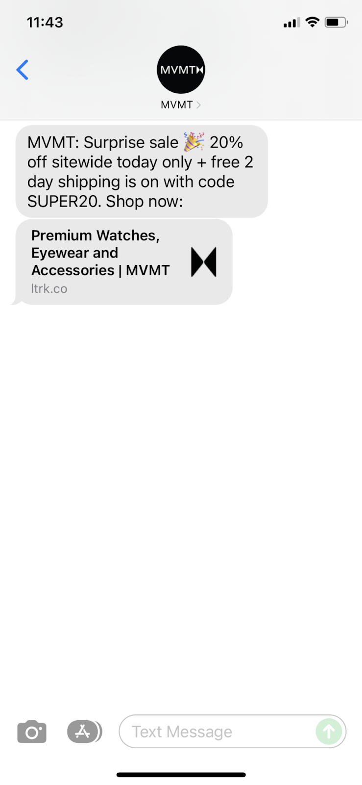 To inspire customers to buy, combine free shipping offers with other discounts, as MVMT did in their SMS. They launched their free shipping with sitewide sale offers for a limited time of two days.