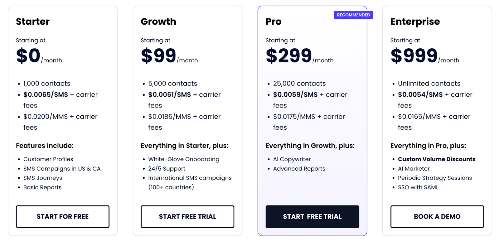 Automated SMS messages are highly cost-effective. Most SMS marketing automation tools charge based on the number of messages (volume-based pricing).
