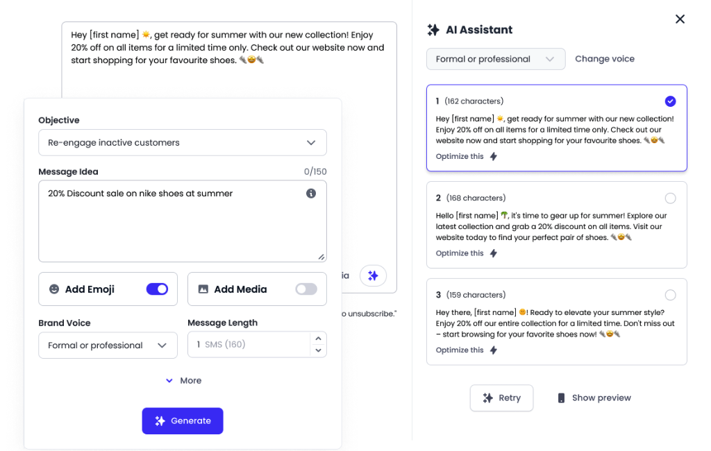 Crafting engaging SMS messages requires brevity, clarity, and a strong call to action. Since the character count is limited to 160 characters, every word must be purposeful.