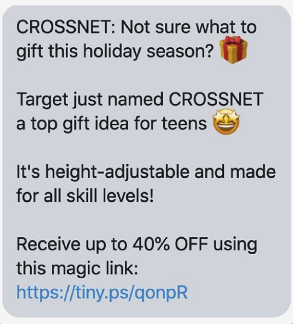 CROSSNET shares gift ideas for the holiday season using SMS.