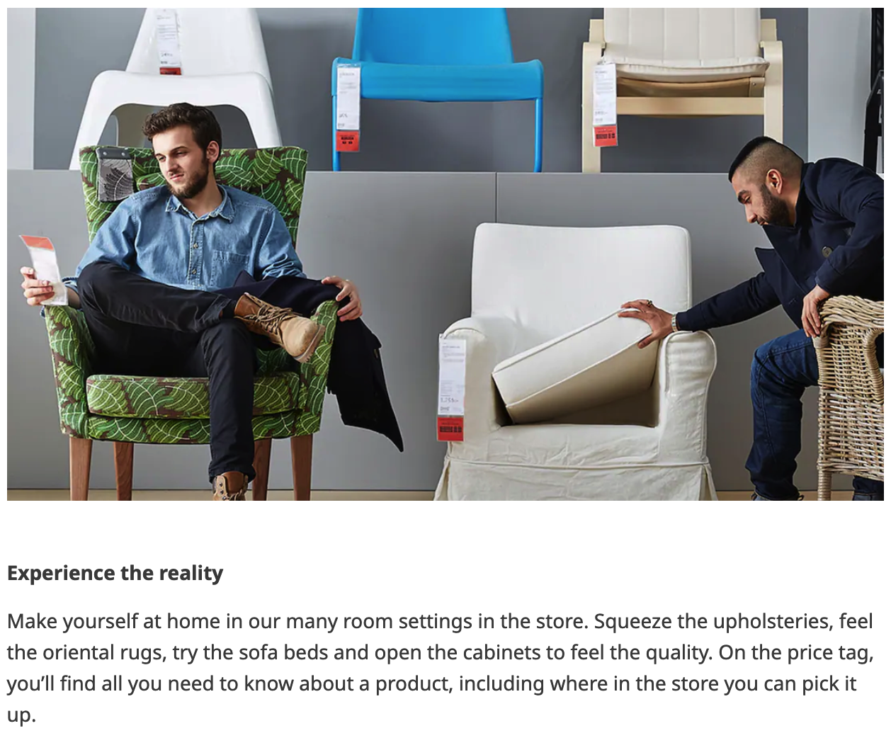 IKEA is the best example when it comes to engaging customers with in-store experiences. Although IKEA has an online store, they offer a distinct experience to shoppers who can try beds, sit in kitchens and eat at the store.