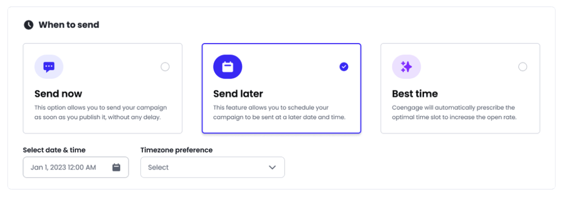 - Choose your preferred channel—SMS, email, or WhatsApp