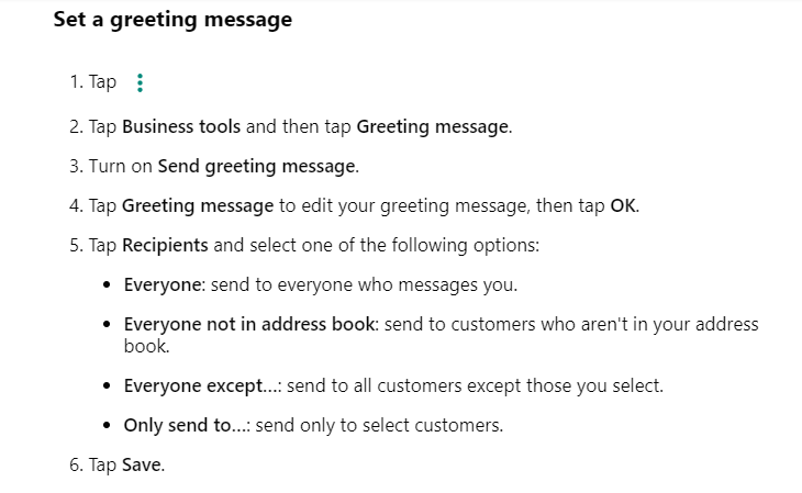 Ensure your WhatsApp Business greeting message includes these key elements.