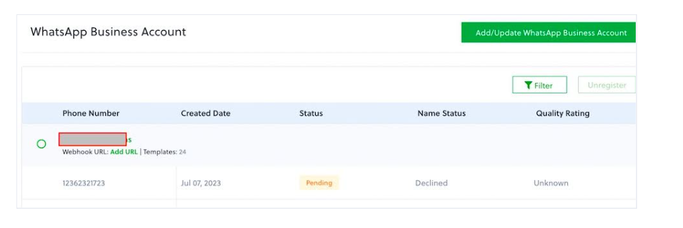- Register the business phone number you want to use on WhatsApp. You can rent a number from Plivo (available in specific countries) or use an existing number. If your number is registered with a different provider, you can migrate it to your new WABA with Plivo. Find more information on the migration process here.