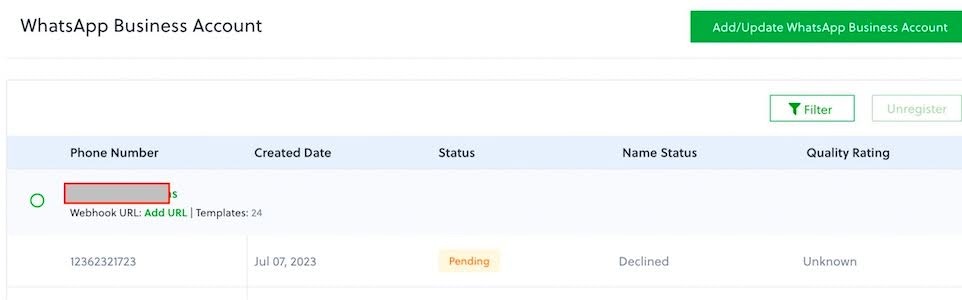 connected. Read more about managing WhatsApp phone numbers.